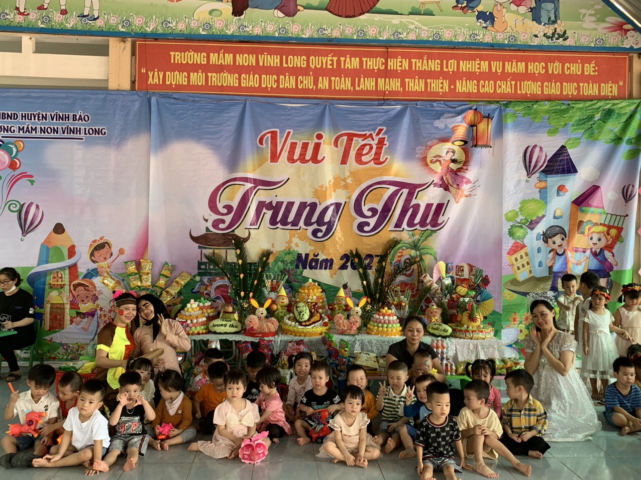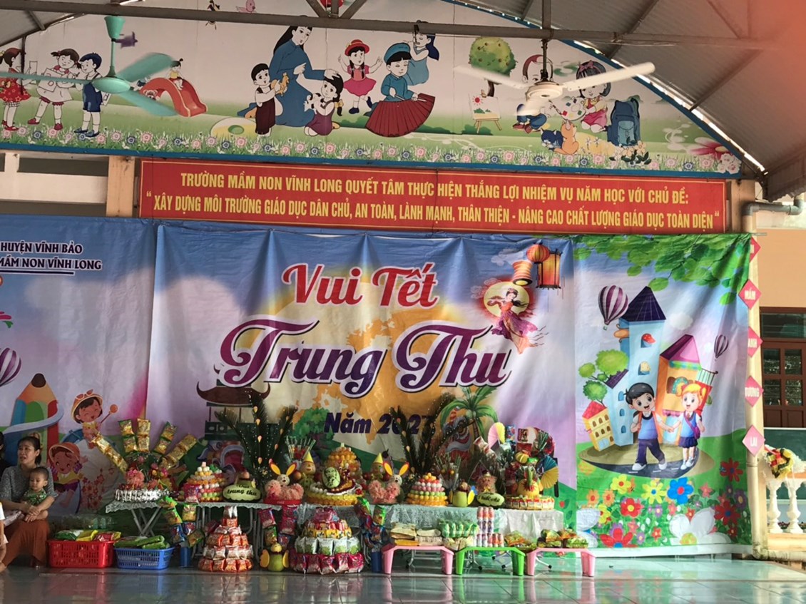 Hôm nay trường Mầm non Vĩnh Long tưng bừng tổ chức Lễ hội “Bé vui tết Trung Thu”. Đây là một hoạt động mang ý nghĩa hết sức sâu sắc và là tình cảm yêu thương, trân trọng của tập thể cán bộ, giáo viên, nhân viên trong trường dành cho các bé trường Mầm non Vĩnh Long thân yêu.