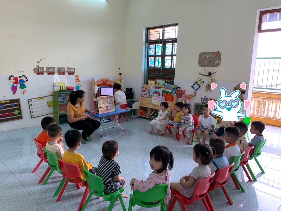 Dưới đây là một số hình ảnh của các bé 3TC1 trong giờ học dạy trẻ đọc thuộc bài thơ: Cô và mẹ.
