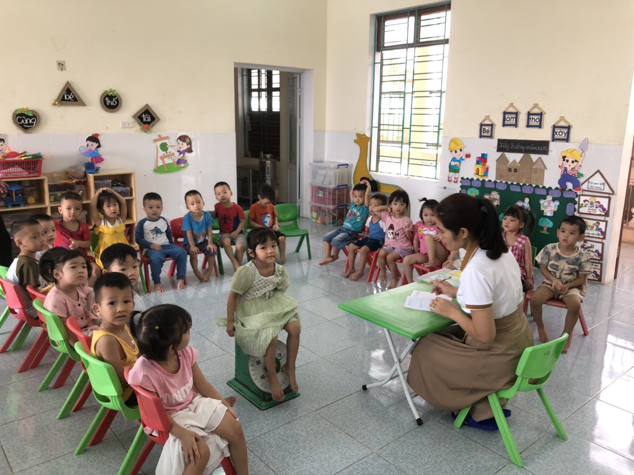 - Nhà trường tổ chức cân đo cho các bé lần 1 tại lớp 3TC2 trường mầm non Vĩnh Long