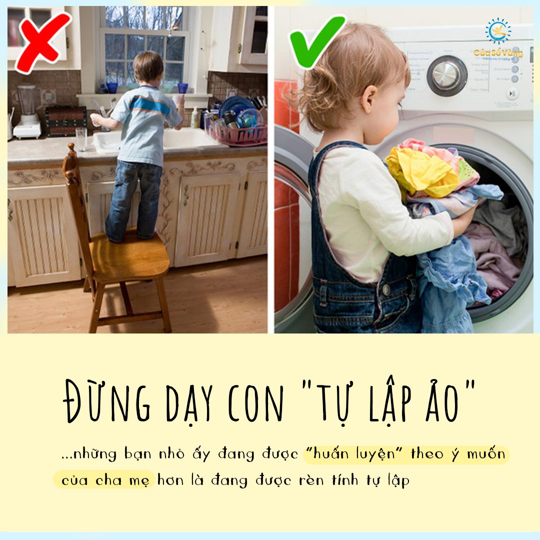 Để dạy con tự lập, cha mẹ cũng cần tiếp cận đến nhận thức của con, cho con hiểu thế nào là tự lập đúng cách. Lúc đầu, cha mẹ cần hướng dẫn con cách làm; sau đó cho con tự thực hiện một số nhiệm vụ cá nhân như tự mặc quần áo, tự ăn, tự đi tắm, đánh răng, đi ngủ đúng giờ… Khi con lớn hơn, cha mẹ hãy chỉ dạy con phụ giúp một số việc nhỏ trong gia đình như nấu ăn, dọn dẹp nhà cửa; cũng như tự sắp xếp giờ giấc học tập, sinh hoạt hợp lý dưới sự quan sát và tư vấn của cha mẹ…