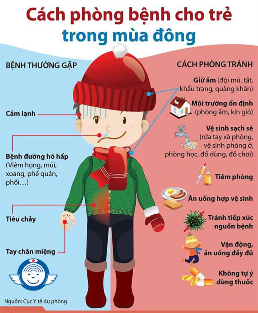 Thời tiết ban ngày hiện nay trời vẫn còn nắng nóng nhưng ban đêm không khí lại se lạnh, độ ẩm tăng cao, nắng mưa thất thường khiến nhiều người thấy mệt mỏi, đặc biệt là trẻ em. Đây cũng là thời điểm thuận lợi để nhiều loại vi rút phát triển mạnh, sức đề kháng của trẻ suy giảm, dẫn đến số trẻ mắc các bệnh về đường hô hấp tăng đột biến. Cảm mạo: Gây ra ngạt mũi, chảy nước mũi, ho, đau đầu, sốt, sợ lạnh, toàn thân khó chịu. Để đề phòng cảm mạo phong hàn cho trẻ trong mùa đông, phải luôn giữ ấm cho trẻ, cho trẻ ăn uống nóng và đầy đủ chất dinh dưỡng. Không để trẻ ra nơi lạnh, có gió. Ban đêm đi ngủ phải chu y cho tre đi tât va không năm nơi có gió lùa.