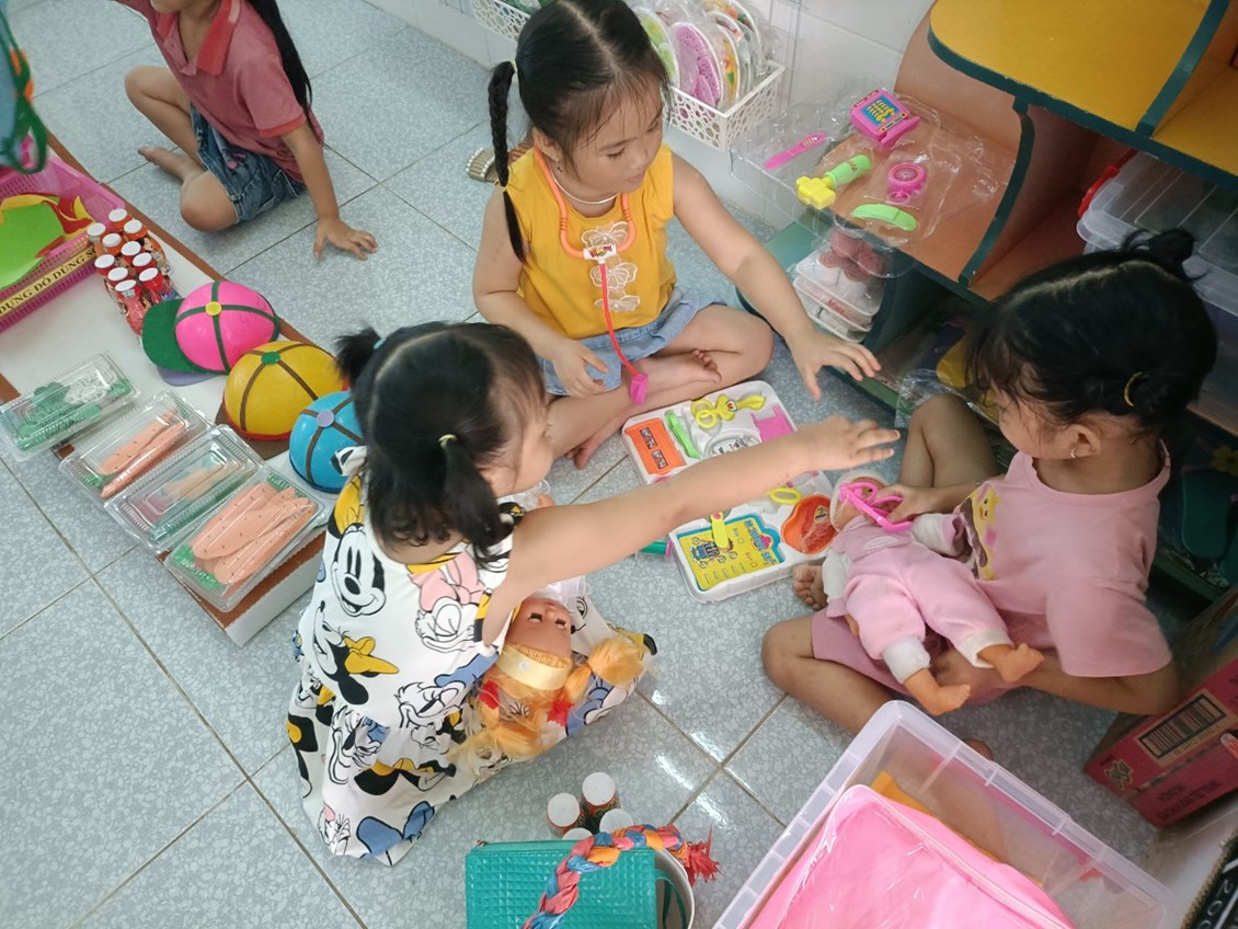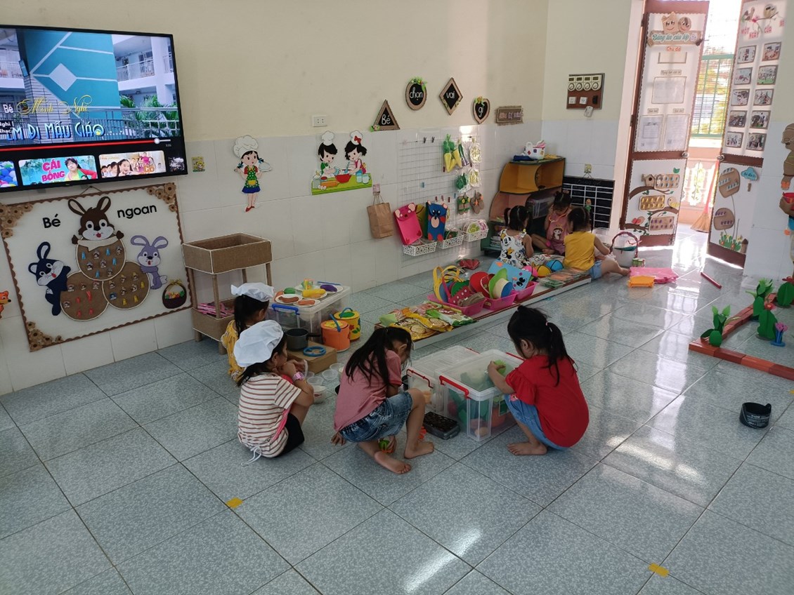 Giờ hoạt động góc của các bé lớp 4TB1 trường mầm non Vĩnh Long.
