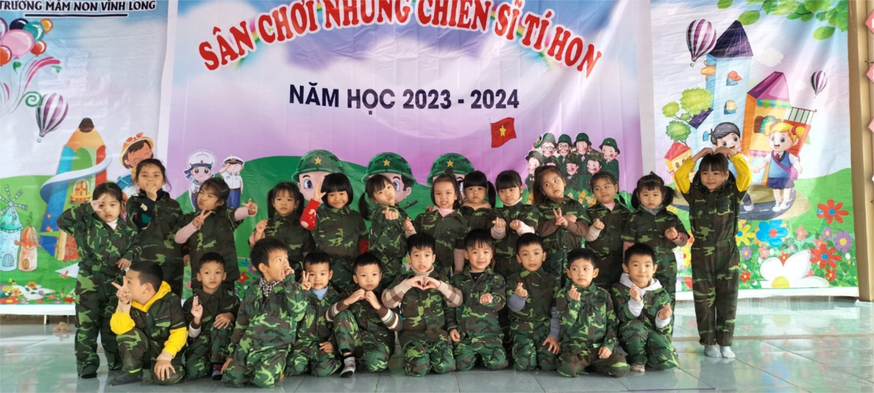 Đến thăm doanh trại bộ đội, cô và trò trường mầm non Vĩnh Long nói chung và các bé lớp 5TA1 nói riêng đã gửi những lời chúc tốt đẹp nhất đến toàn thể cán bộ chiến sỹ của đơn vị nhân ngày truyền thống của Quân đội nhân dân Việt Nam. Cô và trò đã được tham quan nơi làm việc, nơi ở, sinh hoạt hàng ngày của cán bộ chiến sỹ trong đơn vị, được xem các chú bộ đội gấp chăn màn, tập thể dục sáng. Đặc biệt các bé còn được nghe các chú bộ đội ôn lại truyền thống của đơn vị, những công việc mà các chú phải làm hàng ngày.