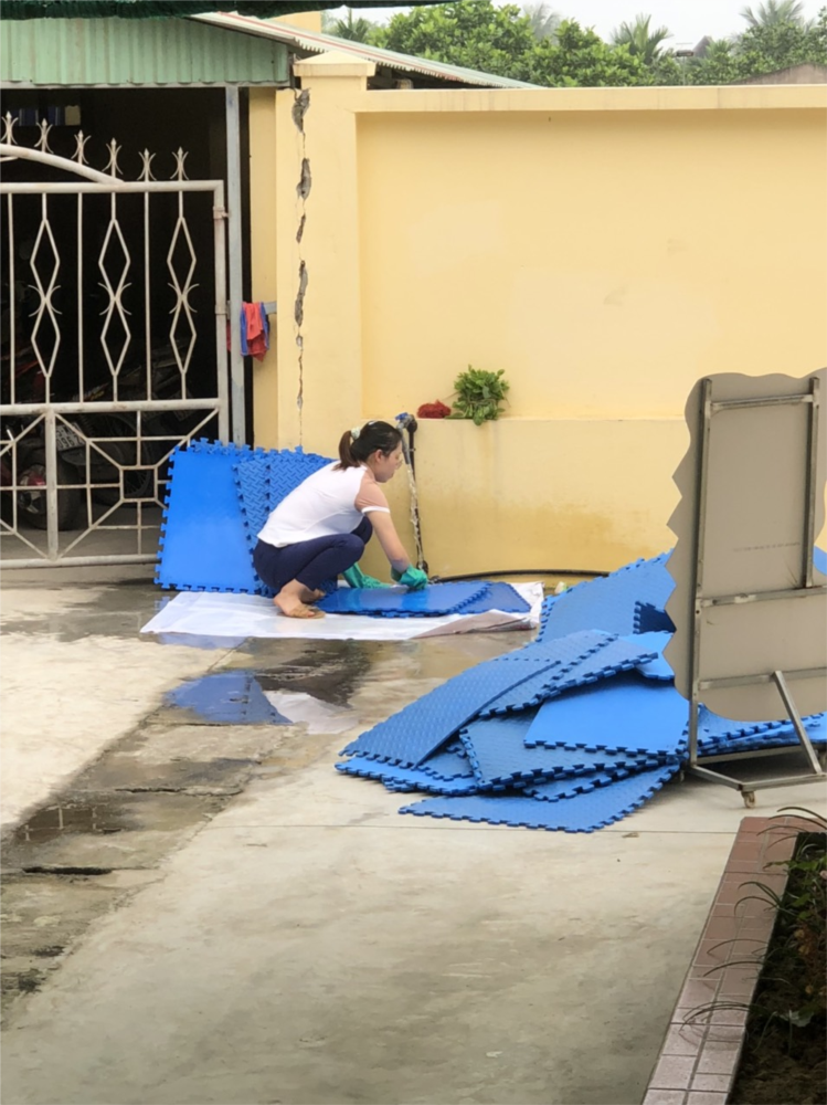 Nhà trường đã tổ chức tổng vệ sinh toàn trường: dọn v vệ sinh lớp học, giặt thảm xốp, chăn mùa đông cho trẻ và cất gọn gàng, phòng học đảm bảo sạch thoáng mát, đẹp, phòng chống dịch bệnh. Giáo viên lớp 3TC2 đã tích cực hưởng ứng thực hiện rửa đồ chơi, giặt thảm xốp, quét trần nhà ...