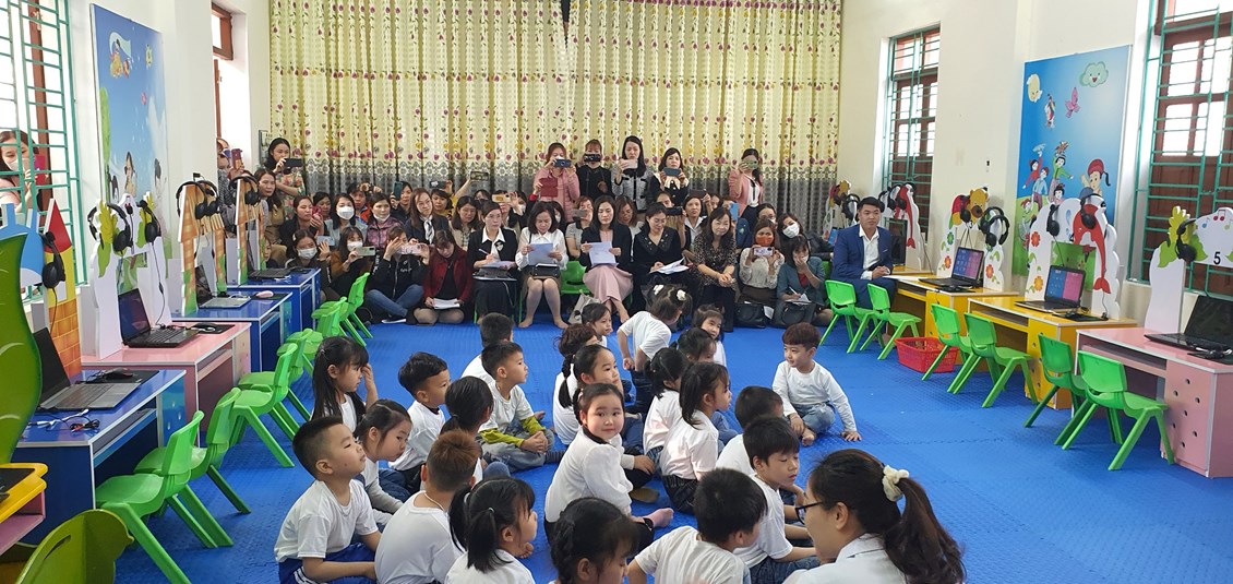 Đại biểu Sở GD&ĐT: Có đồng chí Nguyễn Thị Phương Thảo- Phó Phòng Giáo dục mầm non- Sở GD&ĐT; chuyên viên phòng Giáo dục mầm non- Sở GD&ĐT. Đại biểu Phòng GD&ĐT huyện có đ/c Phạm Thị Hoan- Phó phòng GD&ĐT huyện; đ/c Phạm Hữu Du- Chuyên viên Phòng GD&ĐT cùng các đại biểu là cán bộ quản lý, giáo viên cốt cán đến từ các trường mầm non trong toàn huyện đã tham quan môi trường giáo dục, phòng tin học, khu trưng bày sản phẩm và dự các hoạt động tại phòng chức năng, khu vui chơi ngoài trời có lồng ghép các trò chơi về giáo dục luật lệ an toàn giao thông cho trẻ.