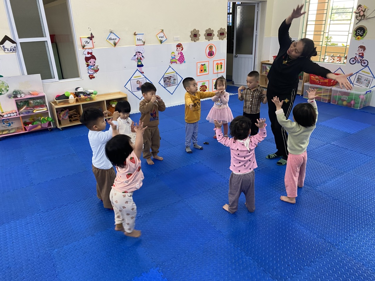 Thể dục buổi sáng là một hoạt động không thể thiếu trong hoạt động hằng ngày của trẻ.