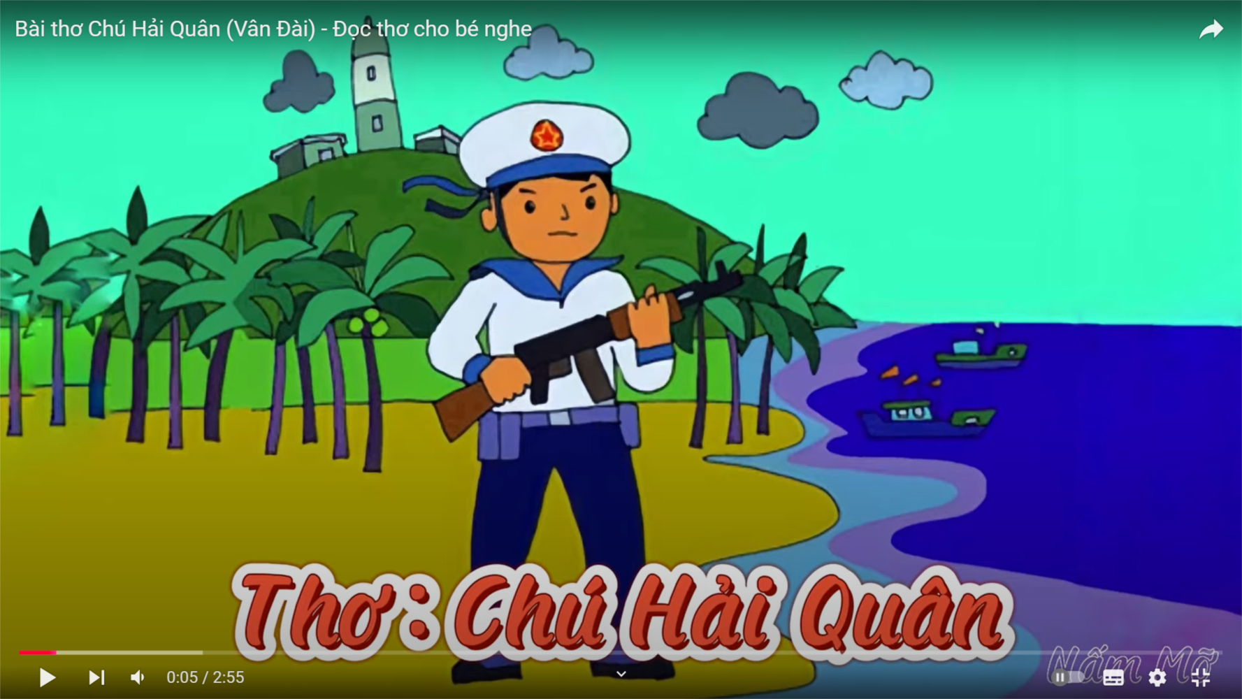Bài thơ nói về tình cảm yêu thương, quý mến của các bé dành cho chú bộ đội hải quân. Các chú đang làm công tác ngoài hải đảo của tổ quốc, hàng ngày đối mặt với mưa, gió, bão nhưng trên tay luôn chắc cây súng để giữ gìn chủ quyền biển đảo của nước ta, không cho quân thù xâm phạm bờ cõi. Khi nhìn thấy hình ảnh của các chú hải quân, các bé cũng mong muốn lớn lên trở thành lính hải quân giống các chú.