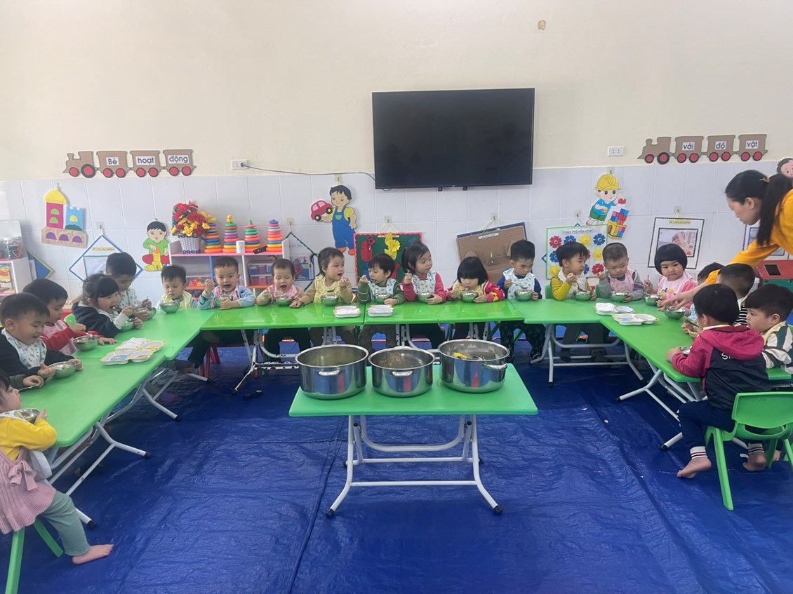 Trẻ mầm non có tham gia cả 3 bữa chính cùng với gia đình và ít nhất là 2 bữa phụ khác. Bữa ăn của trẻ cần được đảm bảo 4 nhóm thực phẩm gồm: chất đạm, chất béo, tinh bột, vitamin và khoáng chất.