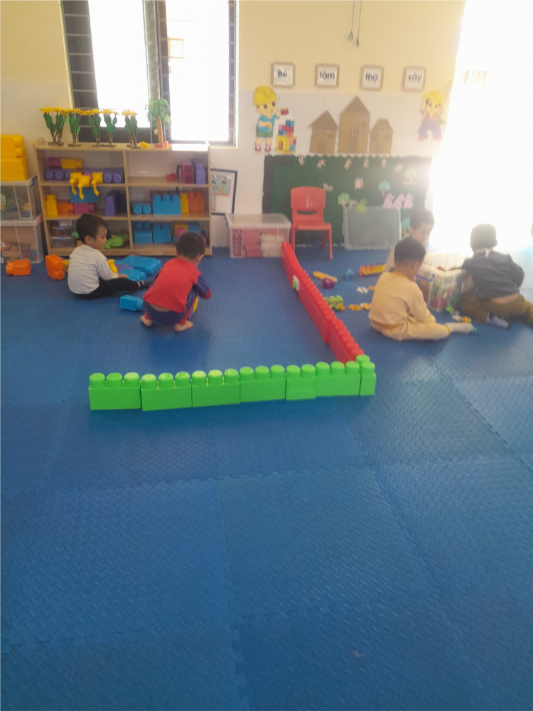 Góc xây dựng: Trẻ sẽ vào vai chú công nhân xây dựng, những việc làm của chú thể hiện rất cần cù, chịu khó.Đồng thời trẻ biết hợp tác với nhau để thực hiện một công việc được giao.